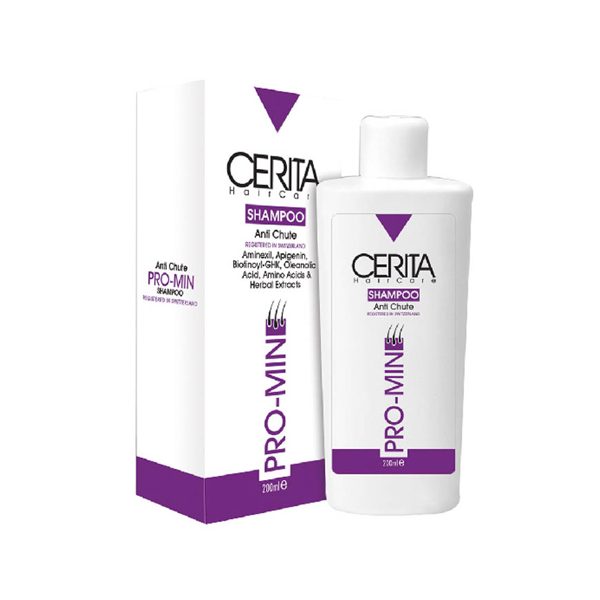 شامپو پرو-مین سریتا دارای یک فرمولاسیون منحصر به فردی است که به کمک مکانیزم های مختلف، ریزش مو را متوقف کرده و متعاقب آن باعث تحریک رشد مجدد موها می شود. یکی از ترکیبات موجود در این شامپو، ماینوکسیدیل است. ماینوکسیدیل بر روی چرخه ی رشد مو اثر می گذارد و موجب طولانی کردن سیکل رشد مو (افزایش مدت زمان آناژن) می شود.
